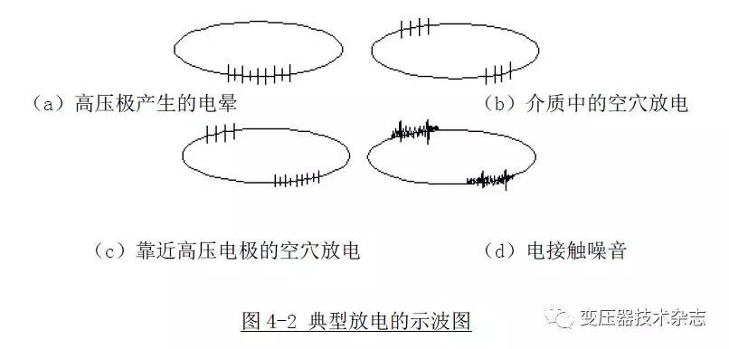 圖1-3為不同類型的局部放電示波圖,示波圖是在接近起始電壓時得到的。